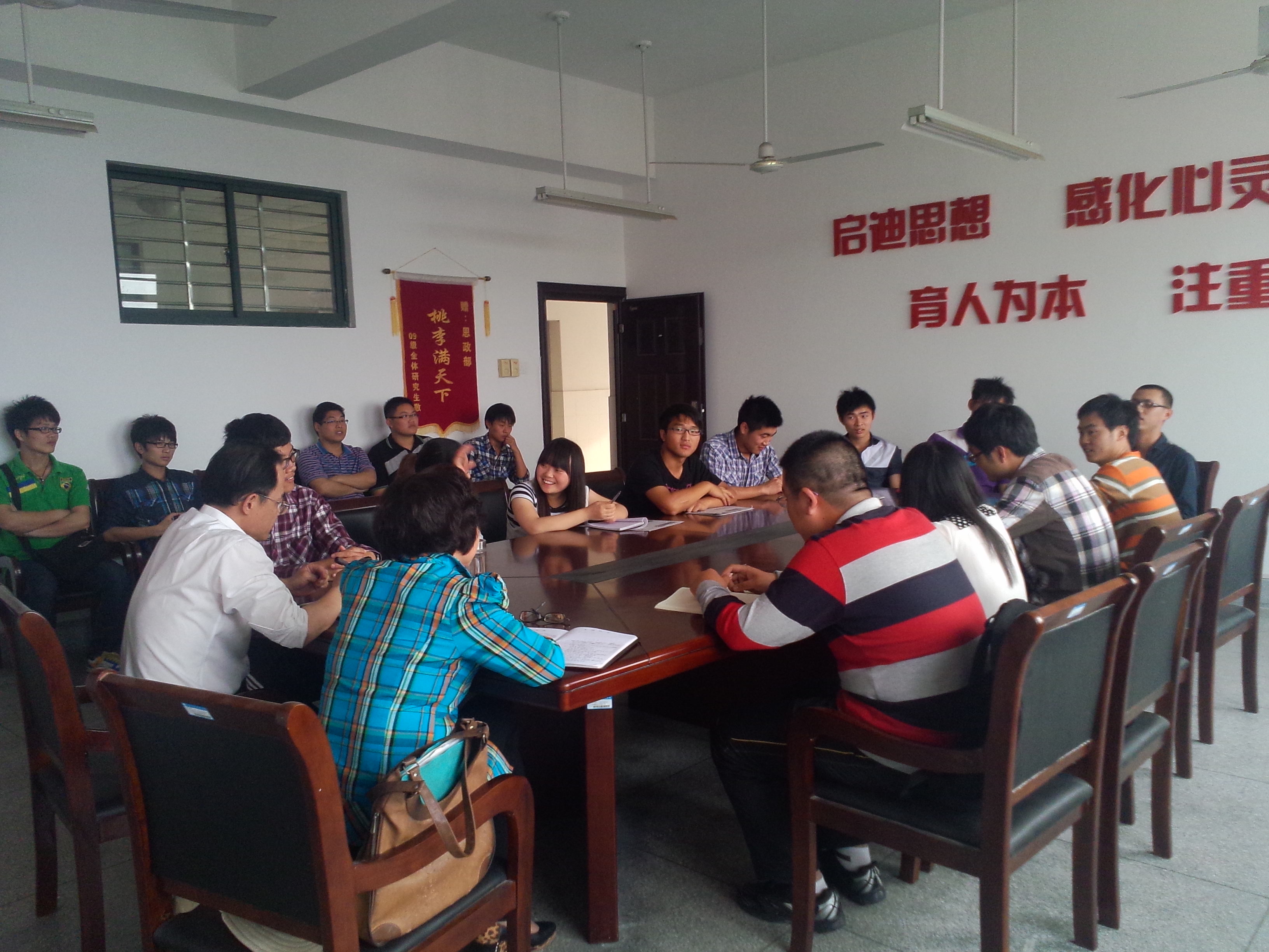 2013年5月3日下午,思政部《马克思主义基本原理概论》课程组在思政部会议室召开了来自全校21名学生代表参加的本学期学生座谈会。座谈会上,师生围坐在一起气氛融洽,主题就本学期开设的《马克思主义基本原理概论》课程授课情况进行交流。