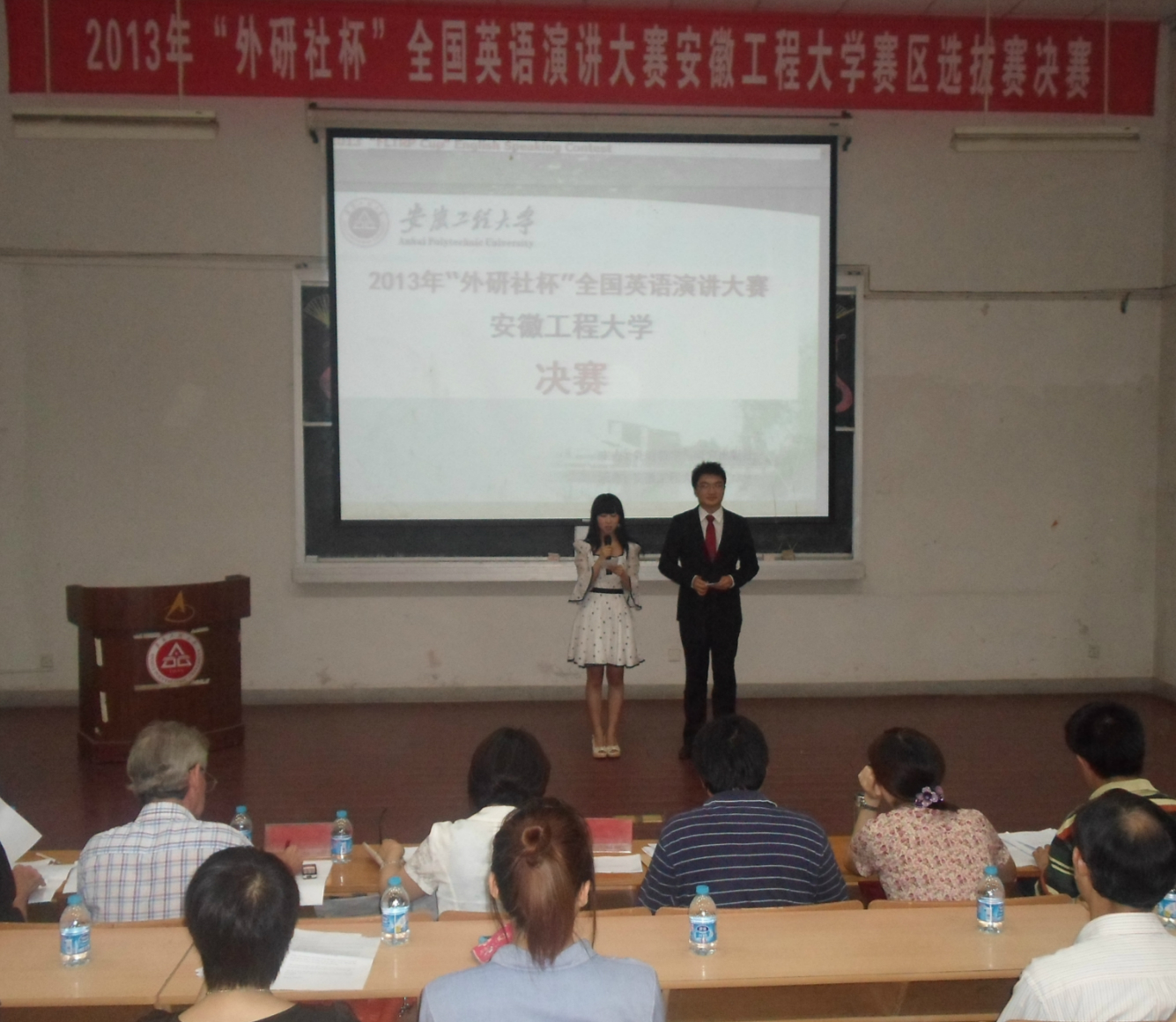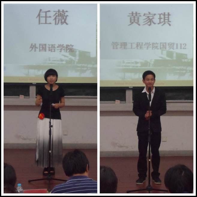 “外研社杯”全国英语演讲大赛是由外语教学与研究出版社、教育部高等学校大学外语教学指导委员会主办的全国性重大赛事。大赛分全国决赛、省级复赛和高校初赛。做为校大学生文化艺术节的品牌活动之一,我校选拔赛由教务处、校团委、外国语学院联合主办,面向全校在籍本科生与研究生,分预赛和决赛两个阶段。经各学院选拔推荐,共有160名选手参加了5月15日的预赛,预赛分为专业组和非专业组,选手通过语音语调、演讲技巧、自身素质等方面的综合展示,最终,15名选手成功晋级决赛。决赛分自我介绍、定题演讲、回答问题、即兴演讲等四个环节。比赛过程中,选手们准备充分,或细腻深情娓娓道来,或激情四射慷慨激昂,或微微拘谨略显紧张,或轻松自如侃侃而谈。在回答问题和即兴演讲环节,更是有几位选手机智幽默的应答引来现场阵阵掌声。