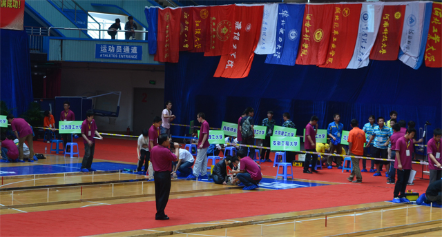 大赛实行校、省和全国三级赛制,我校参赛队在省级选拔赛中以第一名的优异成绩取得参加国赛资格后,在学校领导及相关部门的关心与支持下,工程研发与训练中心精心组织,积极备战。由于国赛竞争更加激烈,中心指导教师指导学生对小车的结构进行了重新设计,制订了更加科学严格的工艺路线,并放弃休息时间指导学生进行无数次的改进与调试,提高了小车的综合性能,确保在国赛的各个阶段得以稳定发挥,取得优异的成绩。
