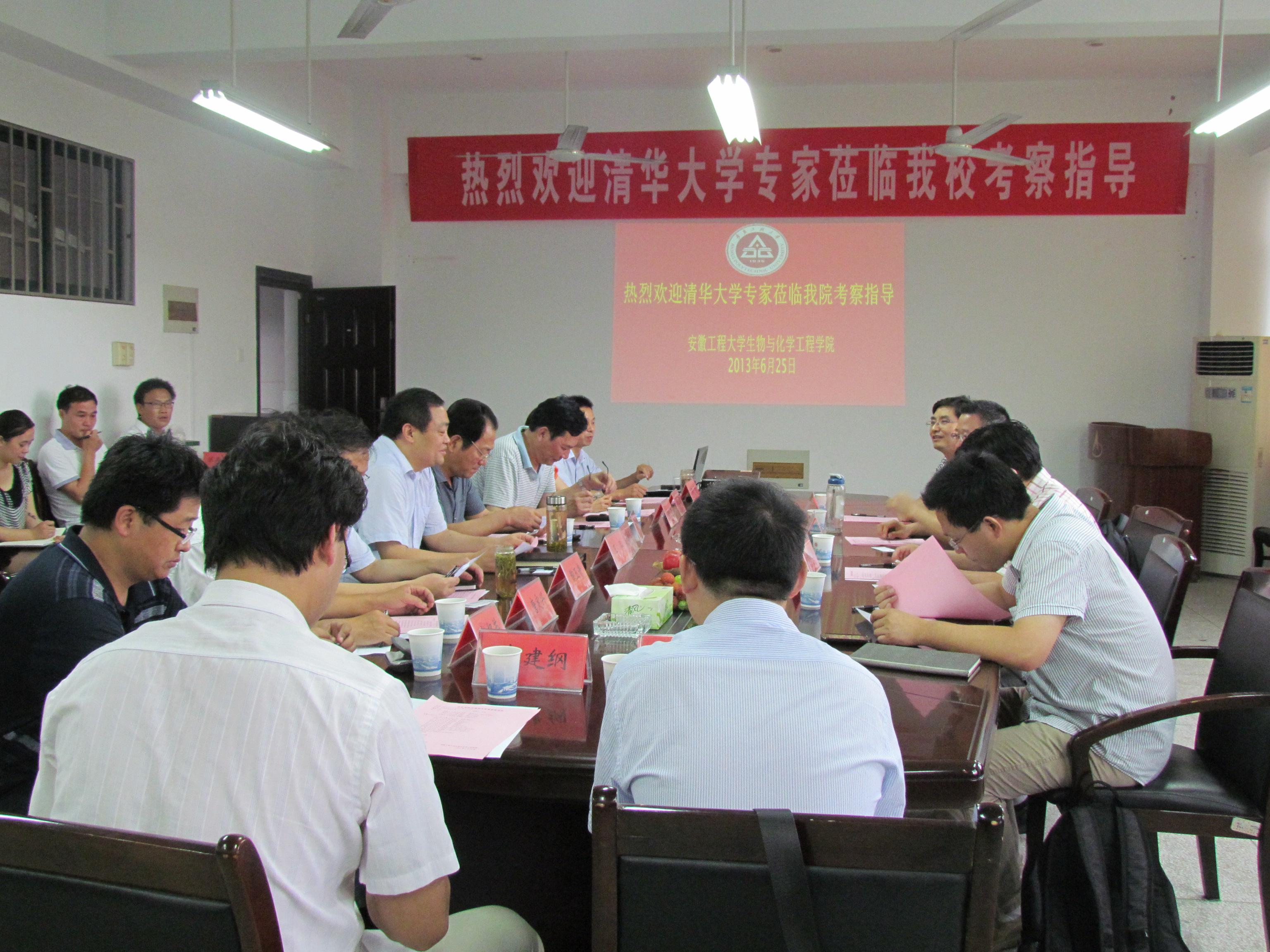 6月25日,清华大学环境学院杜鹏飞教授、刘建国副教授、化工学院邢新会教授、材料学院汪长安教授一行四人来生化学院考察指导,考察期间与生化学院就双方进一步的合作进行了座谈。座谈会由院党委书记王弘主持,出席座谈会的有副校长汤斌教授和学院班子成员以及相关系部负责人。