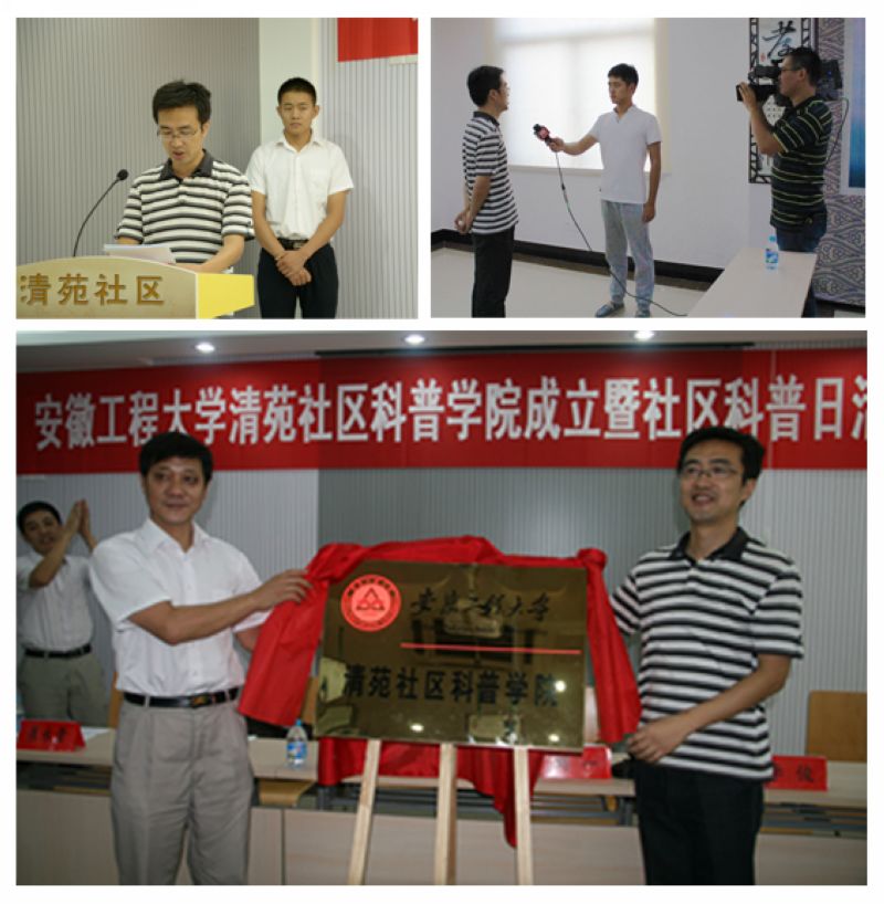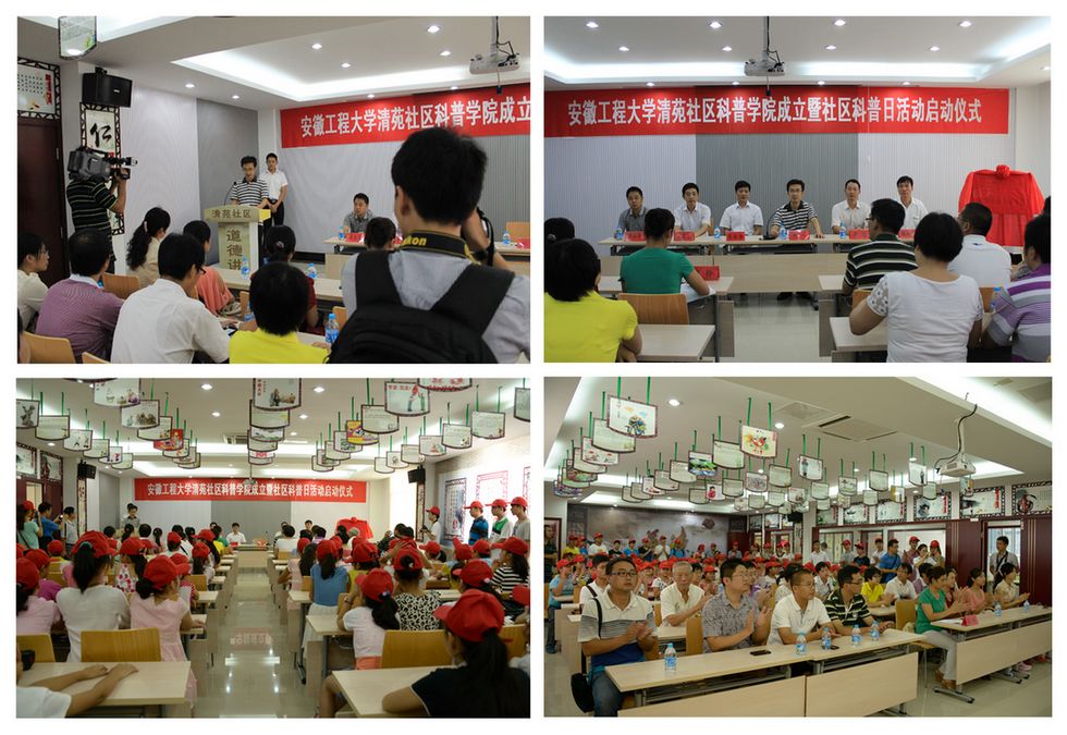 创建社区科普学院是我校开展党的群众路线教育实践活动的一项新举措。暑假期间,校党委副书记苏国红赴清水街道社区调研大学生社会实践和志愿服务活动时,明确要求共青团系统要依托学校的学科专业优势,借助社区的广阔平台,有组织地引导大学生深入社区开展科技创新实践和志愿服务活动,凝练和培育具有我校特色的社会实践和志愿服务活动品牌,提高大学生为群众服务的意识和社会责任感,提升大学生创新精神与实践能力。校团委和清水街道党工委经过前期研讨和协商,决定共同创建清苑社区科普学院,并力争建成安徽工程大学社区科普学院示范校。