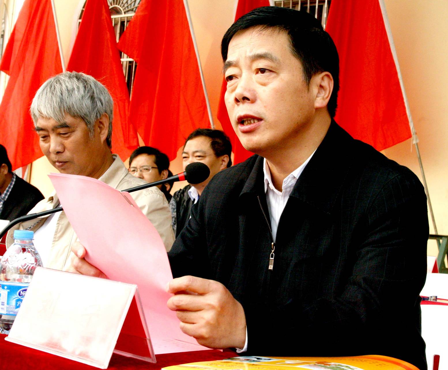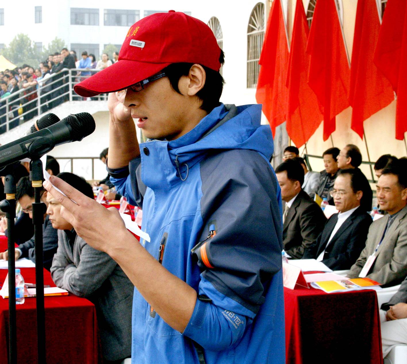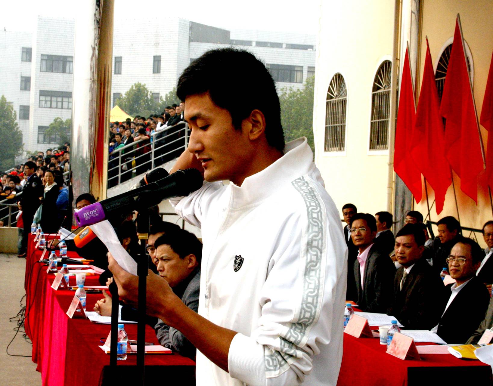 在运动员代表和裁判员代表庄严宣誓后,校党委书记陈其工宣布校第32届田径运动会正式开幕。顿时,全场响起了经久不息的掌声。