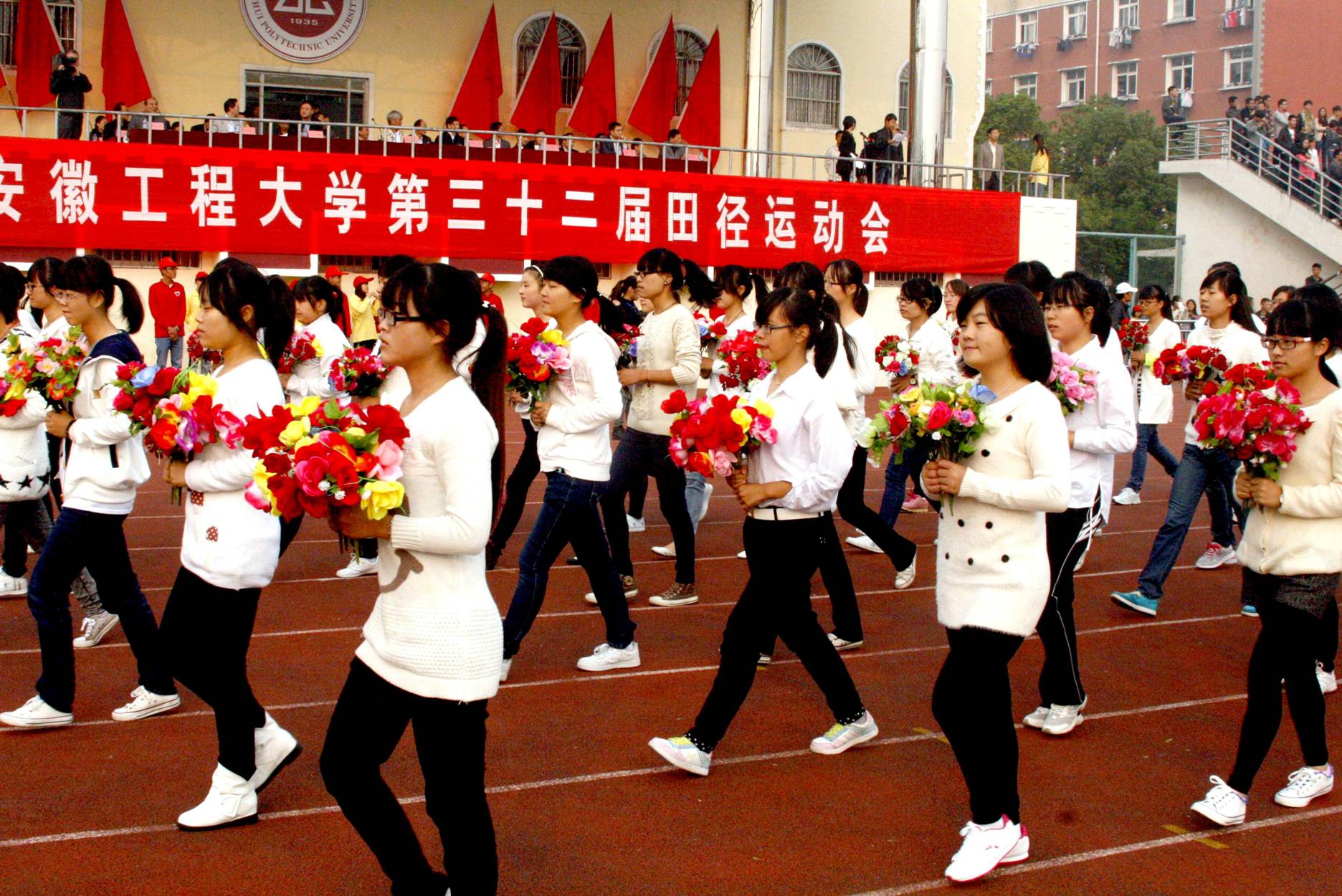 金秋十月,硕果累累。10月24日上午,校第一运动场内彩旗飘扬、人潮涌动,我校第32届田径运动会在此拉开帷幕。校党政领导陈其工、刘宁、叶常林、苏国红、郭兴众,校党委委员以及校体委成员出席开幕式。开幕式由副校长、校体委主任叶常林主持。