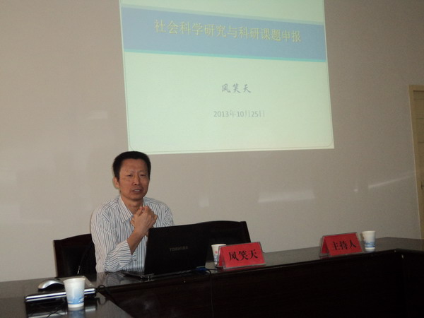 应人文学院邀请,10月25日上午,教育部社会学学科教学指导委员、中国社会学会常务理事、国家社科基金评委、南京大学社会学系主任,博士生导师风笑天教授来我校为师生们作了一场题为《社会科学研究与科研课题申报》的精彩专题报告。报告会由人文学院副院长刘军教授主持,科技处副处长吴之传教授、人文学院与思想政治理论课教学部的教师和研究生聆听了此次报告。