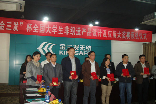 该项大赛是中国纺织服装教育学会、教育部高等学校纺织服装教学指导委员会主办,全国非织造布首强企业浙江金三发集团有限公司与天津工业大学共同承办的,是非织造专业领域最具权威的赛事。此次大赛收到包括东华大学、江南大学、天津工业大学、南通大学、武汉纺织大学、嘉兴学院等纺织院校共计101项作品,其中研究生参赛作品占有较大比重。