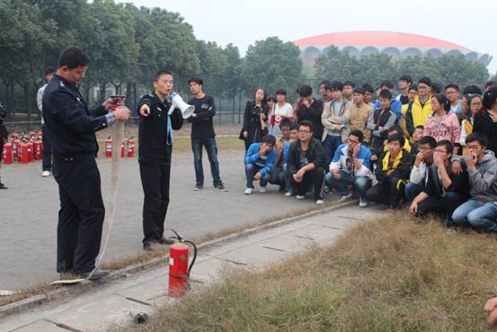 保卫处的老师认真、耐心、仔细地向2013级学生讲解了消防知识,并向同学们介绍了消防栓、干粉灭火器的具体使用方法。最后,在保卫处各位老师的指导下,学生们井然有序的进行了油盆灭火的实地演练活动。