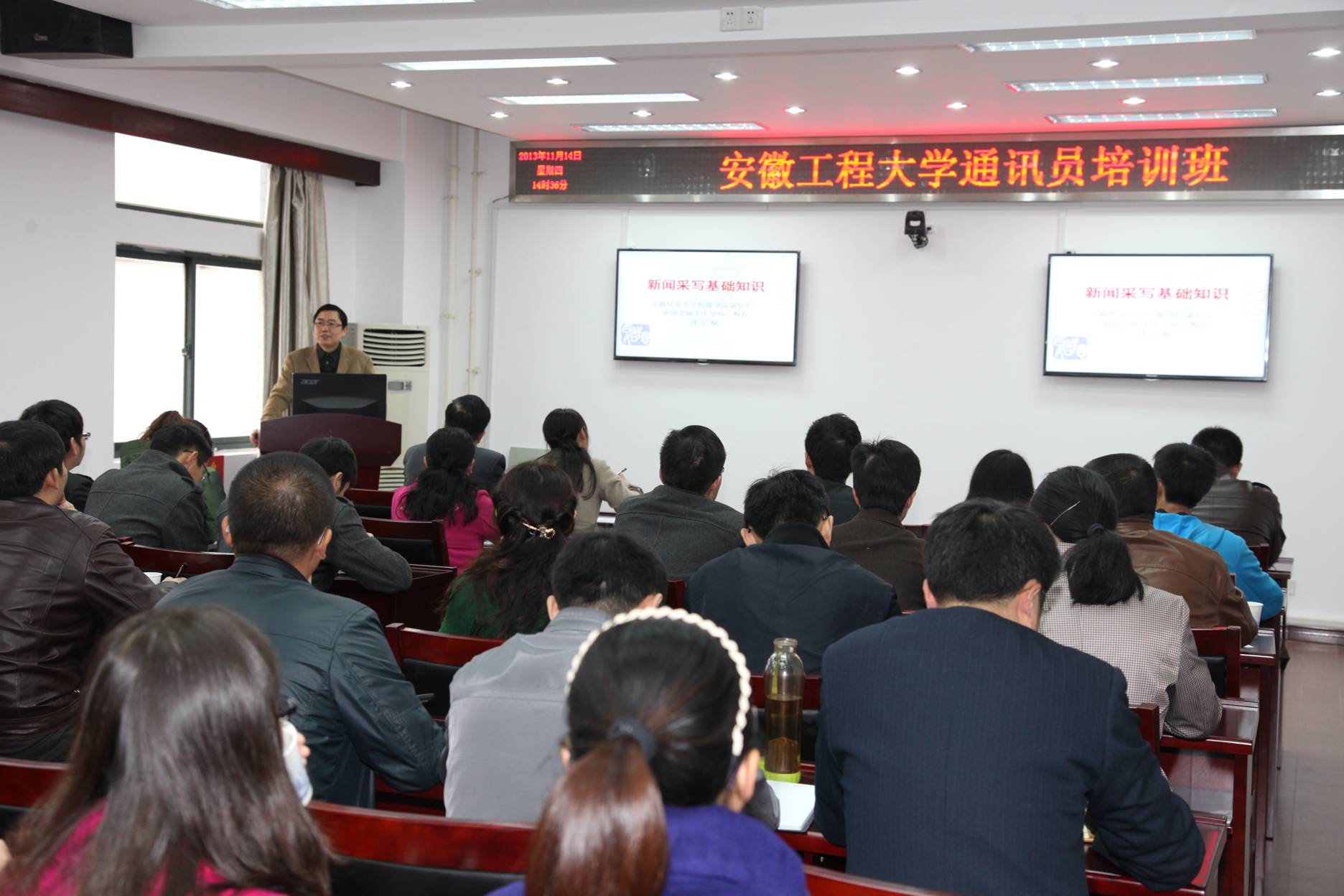 11月14日下午,安徽师范大学传媒学院副院长、硕士生导师沈正赋教授来我校为通讯员和特约记者作了《新闻采写基础知识》专题讲座。我校各学院、机关各部门通讯员和特约记者计50余人参加了报告会。