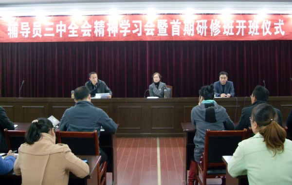 学习会结束后,由学校党委学工部、组织部联合举办的首期辅导员研修班举行了简短的开班仪式。苏国红,校党委委员、组织部部长郑健,王河出席了开班仪式。