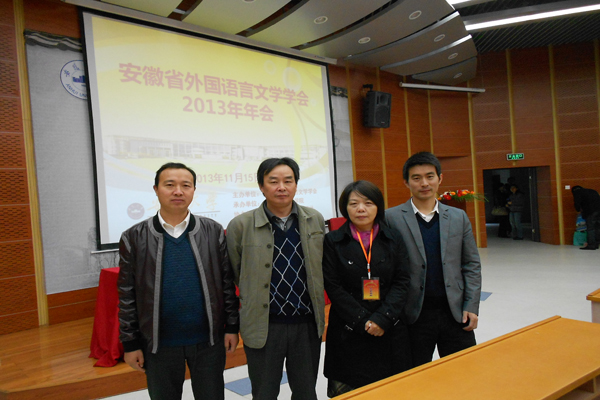 11月15-17日,安徽省外国语言文学学会2013年年会在安徽大学召开。来自省内外40多所高校的180多名外语界专家及外语教师代表出席了本次年会。我校外国语学院院长、安徽省外国语言文学学会副秘书长刘进、副院长金成星及张文明、陈德喜两位教师参加了本次会议。