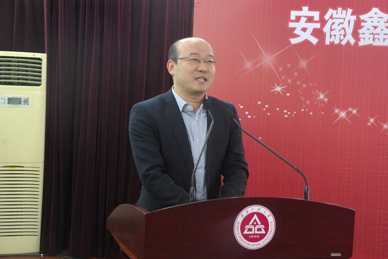 汪华东在讲话中指出,安徽工程大学作为在芜湖的唯一一所以工为主的省属重点建设院校,为芜湖市工业立市、经济和社会发展输送了大量的优秀人才。安徽鑫龙电器股份有限公司董事长束龙胜是安徽工程大学培养的、扎根芜湖、自主创业的优秀民营企业家代表,其创业成就和捐赠善举是学校人才培养质量的最好体现。他希望能够进一步发挥安徽工程大学在人才资源、校友资源上的优势,进一步加强政产学研合作,共建创新芜湖、优美芜湖、和谐芜湖、幸福芜湖。他还介绍了芜湖市相关人才政策,并欢迎安徽工程大学的毕业生扎根芜湖干事创业。