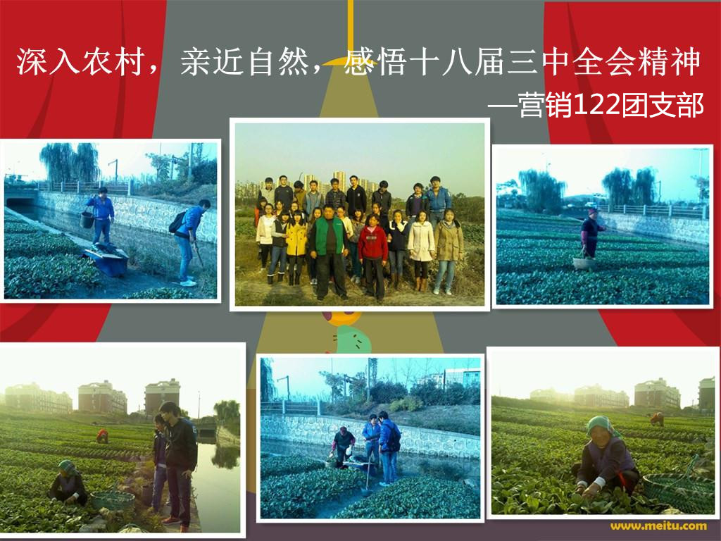 管理工程学院43个班级团支部积极参与,充分发挥主观能动性,大力创新,开拓思维,通过座谈研讨、社会实践、志愿服务、宣讲演讲、问卷调查、展览会、唱红歌等多种形式精心策划此次团日活动,取得良好收益。国贸132团支部全体团员集聚校园梧桐树下,在“用青春践行中国梦”的横幅上郑重签上自己的姓名,每一个签名都凝聚着对祖国的热爱和对实现中国梦的坚定信念;国贸12级两个团支部联合举办了“参观烈士陵园,缅怀革命烈士”的团日活动,通过参观烈士陵园,激励团员青年学习革命烈士坚贞不屈,顽强拼搏,不畏牺牲的勇气和精神,传播青春正能量;营销121团支部则另辟蹊径,举办了“我为十八届三中全会献礼”展览会,展览会共分为作品展示、现场书法、十八届三中全会精神宣传、时政有奖问答四个环节,表达了广大团员青年对祖国前程似锦和繁荣富强的美好祝愿。
