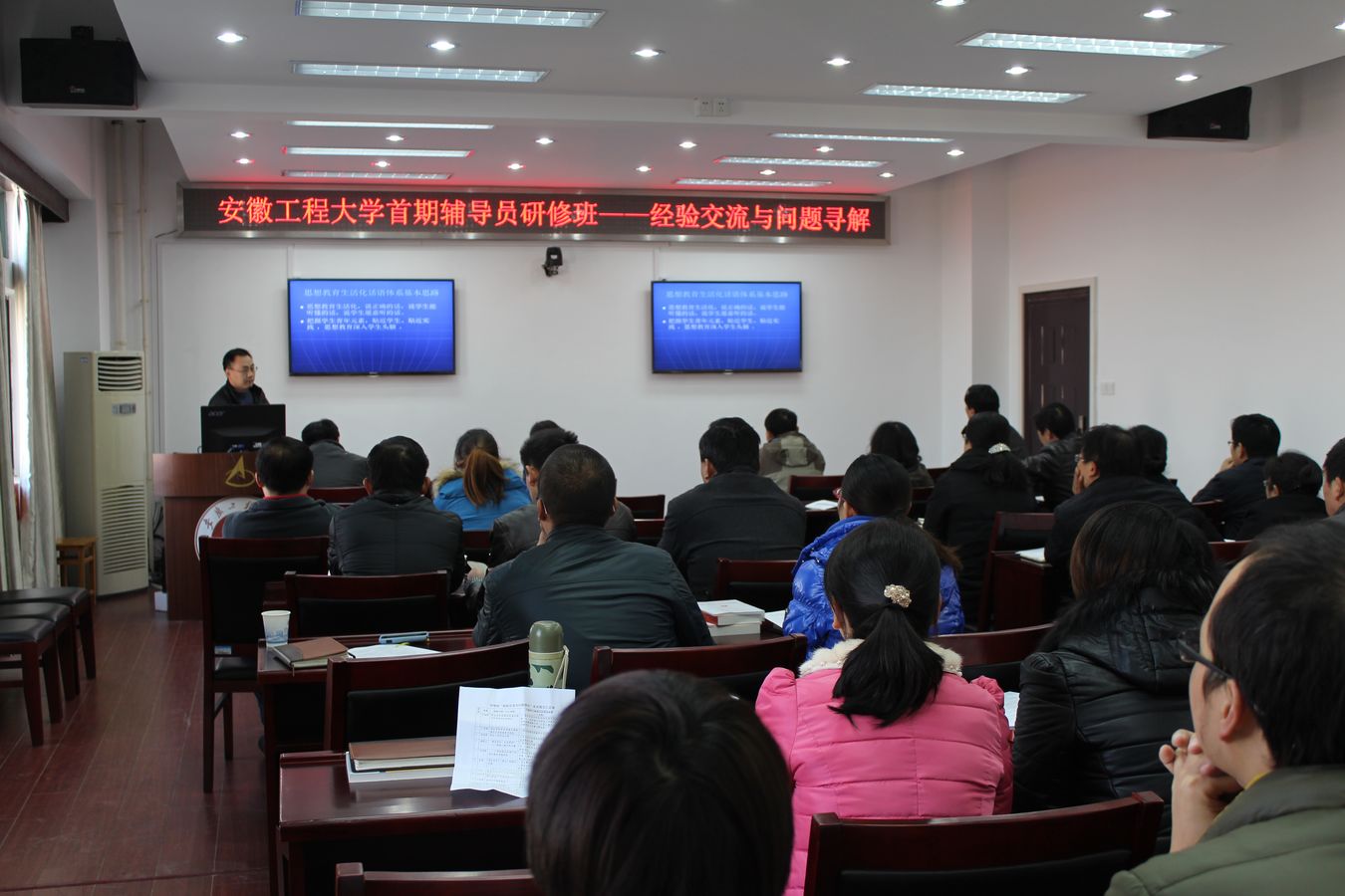 为增进辅导员工作经验交流,破解学生工作中遇到的主要问题,提升辅导员职业化、专业化水平,作为首期辅导员研修班的研修计划之一,工作经验交流与问题寻解活动于11月29日如期开展。校党委副书记苏国红、党委组织部部长郑健、学工部部长王河、各学院分管学生工作领导、全体学员与学生工作其他有关人员出席。活动由研修班班主任胡家增主持。
