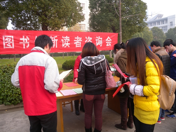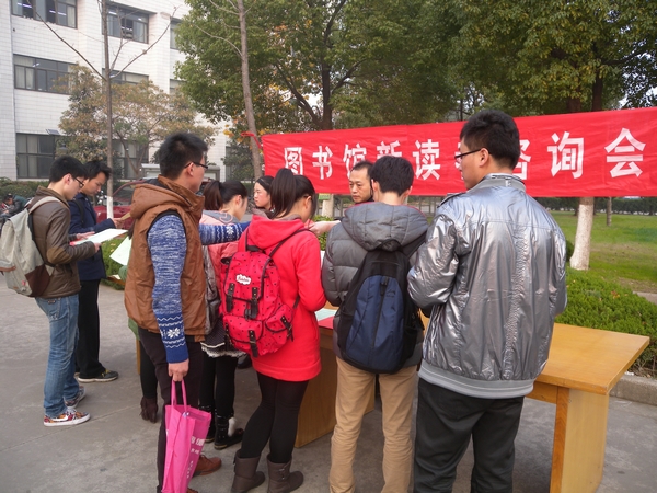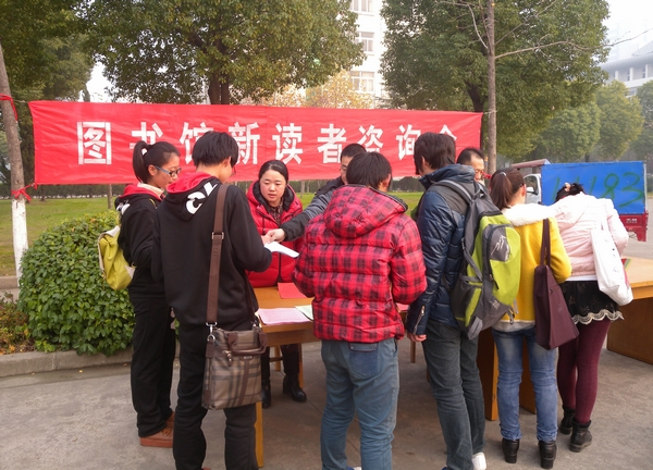 咨询会以2013级新生为主要服务对象。西馆门前广场虽然透着初冬的的丝丝寒意,但咨询现场气氛热烈,有馆员与读者之间一对一的问题解答,有馆员热情洋溢的介绍图书馆数字资源,也有馆员耐心细致的讲解数据库使用方法,图书馆员的热情把阵阵暖意传递给新生读者们,让更多的读者了解图书馆,熟悉并掌握利用图书馆的各种资源。