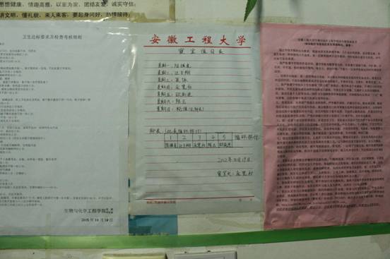 为进一步推进学风建设年活动的开展,生化学院积极加强寝室文化建设,发挥寝室文化在学风建设中的育人功能。近一年来,学院努力从重管理、严抽查、定责任、树典型等多个角度狠抓寝室文化,力争达到“抓室风、促班风、建学风”这一管理目标。