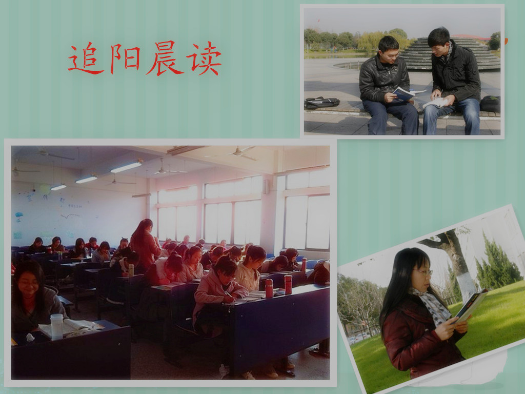 为营造良好的学风,提倡和号召更多的学生早起晨读,安徽工程大学一些学院和班级出实招、求实效,连日来,组织开展了一系列形式各样、主题突出的学风建设活动。外语学院英语131班是安徽工程大学今年刚进校的专升本学生,来自于不同学校不同专业,为了能尽快适应英语专业学习,充分利用两年弥足珍惜的求学时间,英语(升)131班实行晨读规定。当太阳刚刚展露笑脸,将阳光洒向大地,同学们在班委会的组织下来到指定教室,读课文、读单词,朗朗之声不绝于耳。同学们表示,虽然刚开始有些不适应,冬天的早晨很多人都“赖床”,但晨读对英语专业水平的提高很重要,相信自己一定能坚持到底。