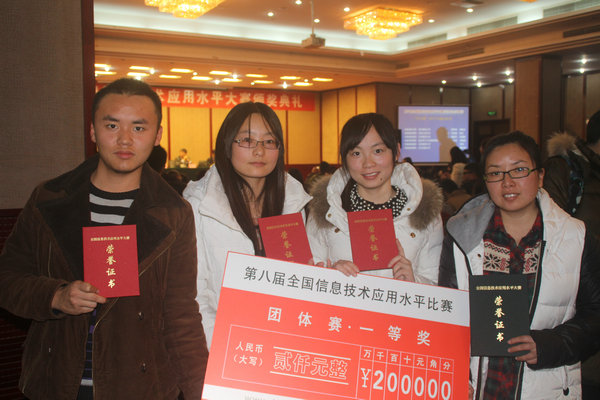 12月7日至9日,第八届全国信息技术应用水平大赛总决赛在北京航空航天大学举行,我校纺织服装学院代表队荣获团体一等奖一项,三等奖一项。