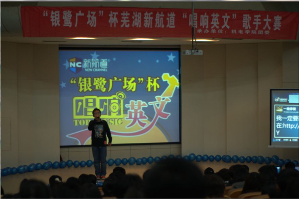 12月19日晚,由机电学院团委举办的“银鹭广场”杯芜湖新航道“唱响英文”安徽工程大学选拔赛复赛在学术报告厅准时举行。经过前期的初赛选拔,来自全校的20名选手成功晋级,并将通过复赛选派10名选手参加芜湖赛区比赛。