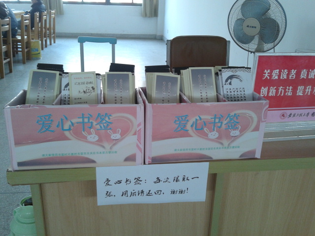 两位同学的捐赠活动不仅彰显了他们的爱心,方便了读者的阅读,同时也呼吁同学们在图书馆阅读的时候要爱护书籍,让爱心书签像一个爱的符号,在同学们的阅读中传播开来,照亮每位同学爱护书籍之心。