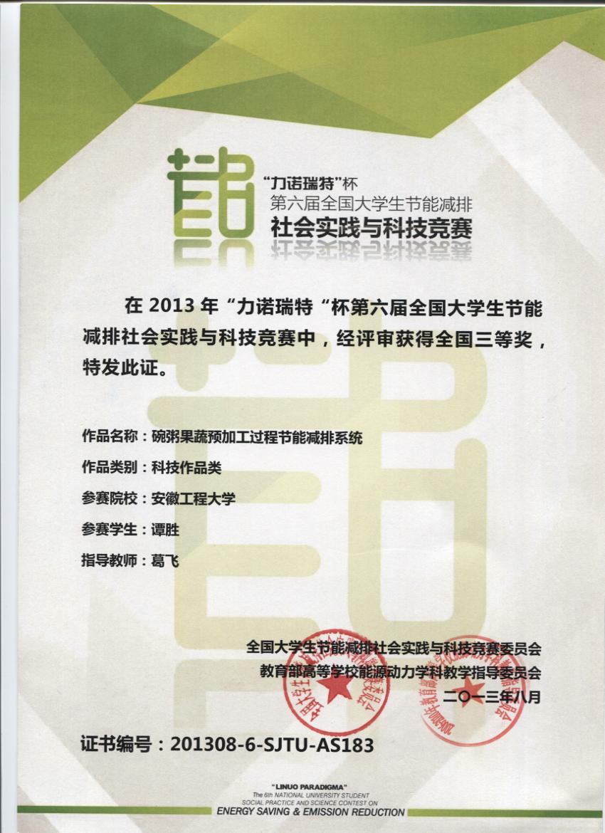 在第二课堂服务学风建设过程中,通过开展丰富多样的科技文化活动,结合专业特色开展的本科生科研立项,举办学科类竞赛,依据学科筹建科技类学生社团,组织师生参加全国、全省大学生科技竞赛,组织申报国家级大学生创新创业训练计划项目,邀请知名专家来校做学术报告等一系列举措,学院学风明显好转。一年来,学院在第二课堂方面取得成绩主要有:在第六届全国大学生节能减排社会实践与科技竞赛中,由我院葛飞老师指导,生工101班谭胜同学的作品——《碗粥果蔬预加工过程节能减排系统设计说明》喜获三等奖;在全国第一届全国大学生高分子材料创新创业大赛中,由高建刚、宋庆平两位老师指导,高分子10级的陈康、王亚等同学的两组作品喜获优胜奖;在第五届“挑战杯”安徽工程大学大学生课外学术科技作品竞赛中,我院有1项作品获得一等奖,4件作品获得二等奖,3件作品获得三等奖;在2012年国家级大学生创新创业训练计划项目中获批40项,2013年国家级大学生创新创业训练计划项目中获批28项。