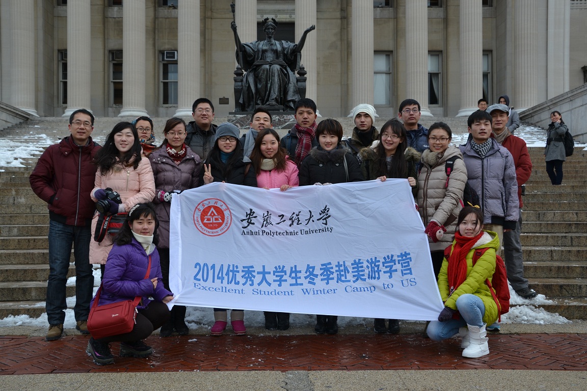 纽约当地时间2014年1月25日,我校赴美全体师生参观了美国最负盛名的常春藤盟校哥伦比亚大学(Columbia University),哥伦比亚大学位于美国纽约市曼哈顿旁边,是美洲大陆最古老的学院之一,为纪念发现美洲大陆的哥伦布所以更名为哥伦比亚大学。师生们详细了解了哥伦比亚大学的设计者、常春藤院校的由来、哥伦比亚大学的历史沿革和教学理念等。