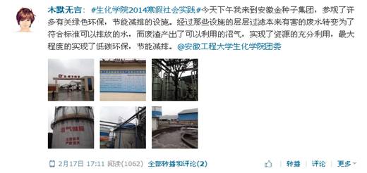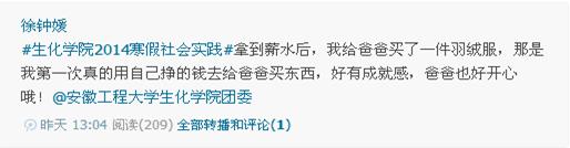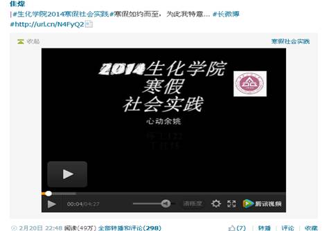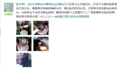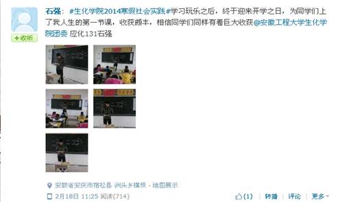 与以往不同的是,大学生们现在更多地开始借用新媒体展示、宣传自己的实践项目。他们在广阔的网络平台上,通过微博,实时广播实践活动的进展、与老师同学们交流心得,展示自己的实践成果。