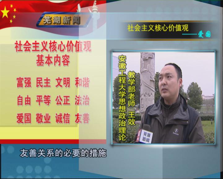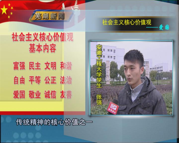 近日,我校师生接受了芜湖电视台以“培育和践行社会主义核心价值观”为主题的系列采访。大家结合工作和学习实际,从社会主义核心价值观的第三个层面即“爱国、敬业、诚信、友善”畅谈了自己对其的理解和感悟,一致表示要增强对社会主义核心价值观的认知与认同,为推动形成奋发向上、崇德向善的良好校园氛围贡献自己的力量。