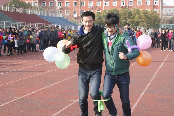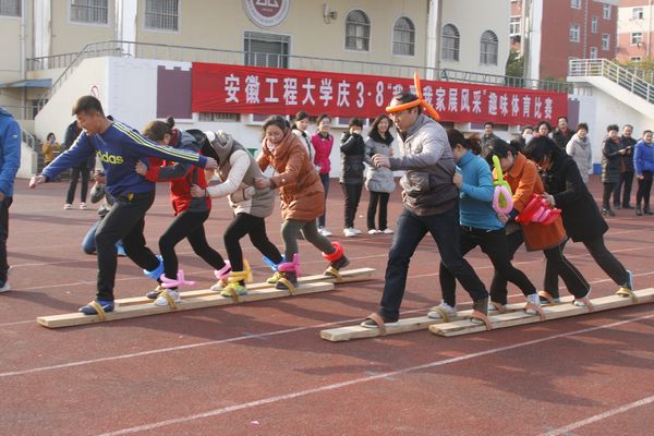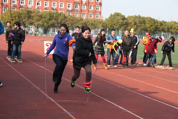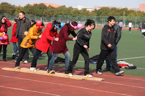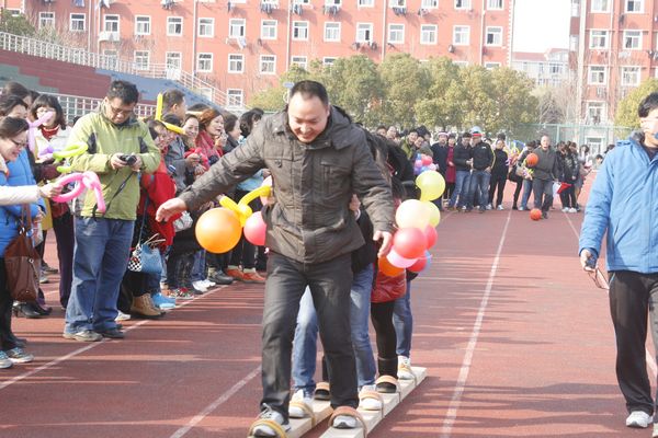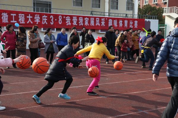 学校党政领导十分关心活动安排,党委副书记苏国红亲自指导活动安排并代表学校向全校女教职工致以节日问候。校工会主席寿达军,校体委副主任、体育学院党委书记文才新,校工会副主席、女工委主任张寅红到场为各队选手助威。趣味比赛紧紧围绕活动主题,项目构思巧妙生动,随着比赛哨声吹响,各参赛队的13名队员依次完成两人三足跑、双人拍篮球、双人跳绳跑、抬花轿跑和齐心协力走等趣味比赛项目。本次比赛男教工表现了很高的参与热情,同时各参赛队通过充满创意的气球装扮,使比赛场面和比赛环节更显趣味横生,观众笑声不断,现场气氛和谐而欢快。各学院、各总支及相关部门领导高度重视本次比赛,不仅亲临比赛现场为队员加油助威,有的还亲自上场参加比赛。热烈、欢乐、和谐有趣的比赛场面吸引了大量的热心观众驻足加油,有近600名教职工参与了本次活动。经过激烈角逐,教辅、纺服学院 、体育学院和机关等四支代表队获一等奖。校工会将给予获胜代表队奖励,并为参加比赛的所有选手送上了一份精美的节日礼物。