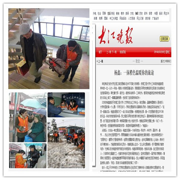 当天,《大江晚报》也专篇报道了芜湖火车站春运志愿服务活动——暖途青年志愿者服务社社长杨鑫同学。“甜橙暖他人,温暖传天下”这是学院“和谐花”交通志愿服务活动的原则。志愿者们九年如一日的为和谐交通贡献着自己的力量,用行动践行雷锋精神。