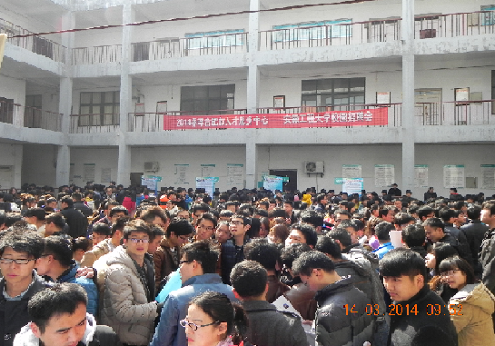 为进一步拓宽就业渠道,搭建用人单位和毕业生之间双向选择的平台,3月14日,我校举办了合肥人才组团招聘会、“创新昆山高校行”组团招聘会,16日举办了“放飞梦想,聚才鄞州”组团招聘会,包括GXG男装、通威太阳能(合肥)有限公司、奥克斯集团有限公司等近50家国内知名企业前来招贤纳才。师生活动中心内共有3000多名毕业生踊跃自荐,用人单位精心挑选,友好沟通,双向选择,现场气氛热烈。