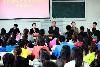 人文学院党委副书记章靖平希望全体学员要牢固树立党员意识,切实履行党员的权利和义务,要端正学习态度,安心学习,注重理论联系实际,真正做到从思想上和行动上入党。
