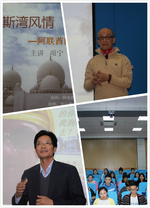 项宁老师用大量的图片和视频展示了波斯湾地区的伊斯兰文化和艺术,结合自己在迪拜、阿布扎比、沙迦和阿莱茵等地的见闻,讲述了部分我校优秀学子在校期间奋斗成长的故事以及他们踏上社会后奋发有为的成功经历,希望同学们做人要以善为先,做事要踏实勤奋,在校期间不但要学会如何选择“潜力股”,更要努力让自己成长为名副其实的“潜力股”,要相信奋斗的青春最美丽!
