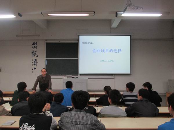晚上7:00,沙龙准时开始。首先,王介石通过创业项目选择的案例阐述与分析,引出主题,让同学们就案例和自己的创业项目选择、想法发言,进行讨论。随后,王介石对同学们的想法进行点评,讲述了多个领域多类型的创业实例。王介石指出,创业方向的选择要尽量与专业对口,大学生创业与其他人员创业应该有的区别,同学们要在圆满完成学业的基础上,将自己的创业想法通过四年的积累沉淀并逐步升华,为未来创业成功奠定基础。最后,王介石强调创业不是一蹴而就的事,也不是一劳永逸的事,创业者永远在路上,创业方向的选择,应该与时代接轨。