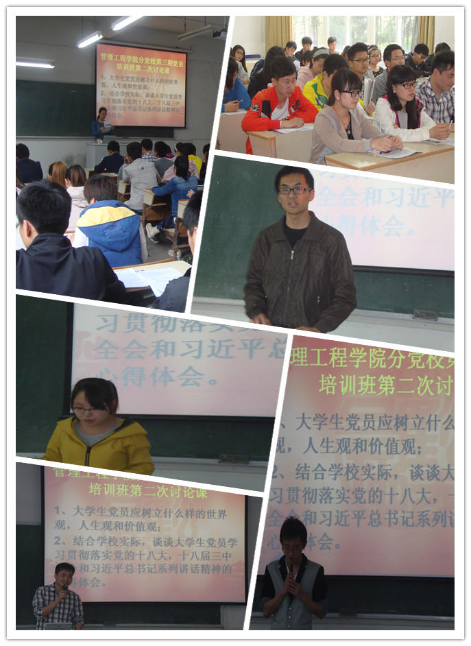 4月23日下午,管理工程学院分党校第三期党员培训班第二次讨论课在2教103教室进行,讨论会由院团委副书记、第三期党员培训班班主任沈明领主持。
