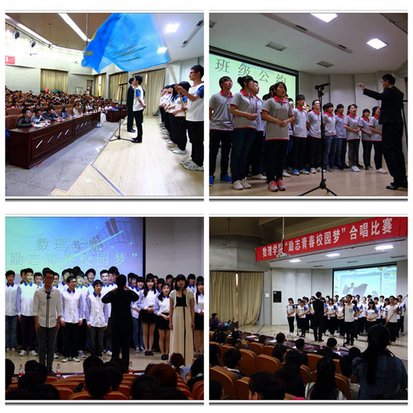 4月26日,数理学院在学术报告厅举行了“励志青春校园梦”大合唱比赛。现场歌声嘹亮,掌声不断。经过激烈的角逐,金融131、金融121班级代表队脱颖而出,凭借完美的配合、独具匠心的创意,夺得了比赛的一等奖,其余参赛班级分获二、三等奖。