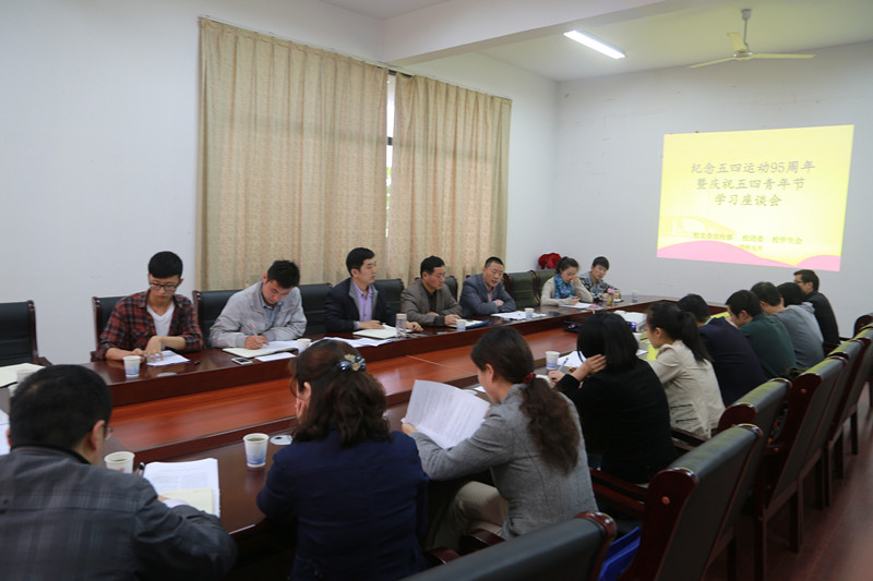 5月4日下午,由校党委宣传部、校团委、校学生会联合举办的纪念五四运动95周年暨欢庆五四青年节学习座谈会在团委会议室召开。座谈会由校团委副书记冉昆玉主持。