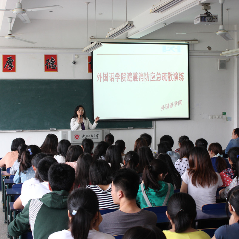 为了增强同学的防震减灾意识和安全防火意识,使同学掌握基本的防震应急疏散和消防安全常识及处置火灾的技能,在校保卫处的指导下,外国语学院于5月14日下午在5教举行避震应急疏散及消防实战演练。院党委副书记谈丽华、全体辅导员、一二年级班级两委和寝室长参加了演练。