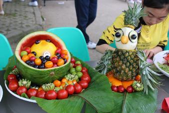 水果拼盘大赛作为我校大学生文化艺术节特色活动,已经成功举办了三届,成为了校园文化亮丽的一角。同学们在踊跃参与的过程中,发掘了创新思维潜质,锻炼了动手能力,提高了发现生活之美的艺术素养。