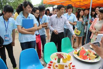 5月18日, 由校团委、后勤服务集团主办,校大学生伙食管理委员会承办校第三届蔬果拼盘大赛在老篮球场举行。校团委、后勤集团相关负责人观看比赛并担任评委。