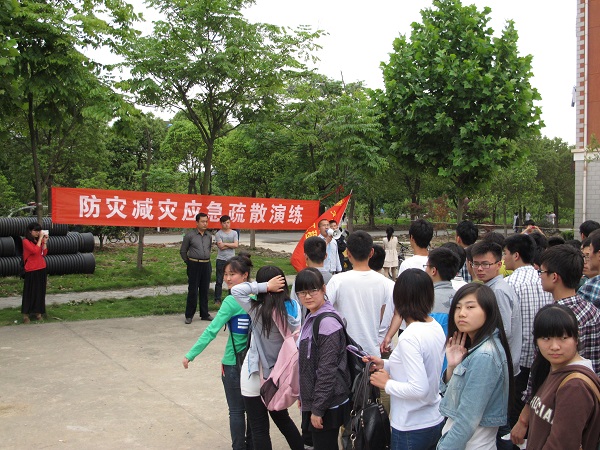 5月12日下午,男生13号宿舍楼前哨声长鸣,现场指挥宣布:“地震来袭,紧急避震”。学生安全疏导员立即打开宿舍大门,保持畅通,同时告知学生“地震了,不要慌,快避震”。这是管理工程学院组织学生开展应急避震和紧急疏散演练现场,拉开了我校各学院应急避震和紧急疏散演练的序幕。