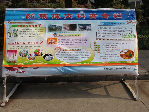 结合“5.12防灾减灾日”宣传主题,学校通过宣传板、橱窗等形式开展防震减灾、震灾自救与互救、防溺水、防火、防盗和交通安全知识系列安全教育宣传活动,进一步增强广大师生员工安全防范意识和防灾减灾意识,切实促进我校“平安校园”建设。