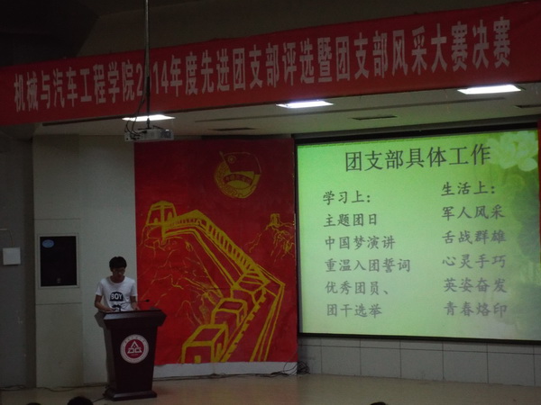 5月22日晚,机械与汽车工程学院在学术报告厅举办2014先进团支部评选暨团支部风采大赛。院党委副书记周怡,团委书记黄炜出席本场比赛。