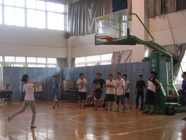 5月27日下午,计算机与信息学院在校体育馆举行了欢送毕业生篮球赛。毕业班联队和非毕业班联队为观众呈现了一场精彩比赛,既有激动人心的拼抢,也有轻松愉悦的友情。中场休息时间,还邀请现场女同学参与互动,由男同学绕杆运球后传给女同学投篮,现场气氛轻松活跃,充满欢声笑语。