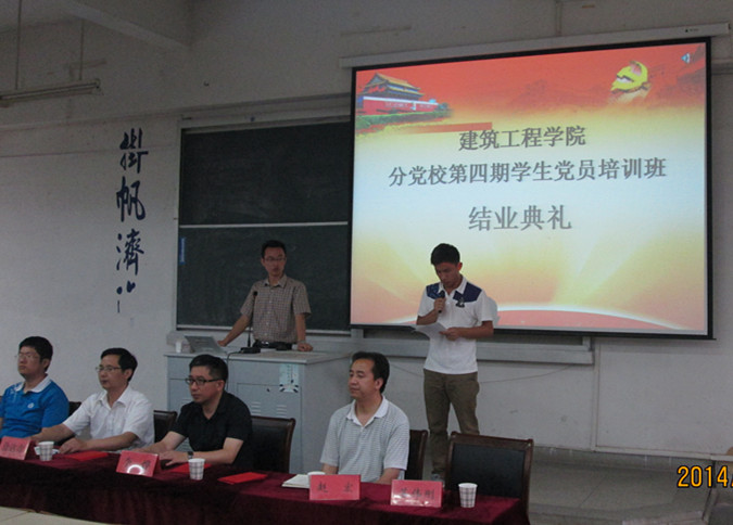 5月29日下午,建筑工程学院分党校第四期学生党员培训班结业典礼在2教106举行。院党委书记徐达奇、副书记李烨、院团委副书记及各学生党支部书记出席结业典礼。典礼由本期培训班班主任苏伟刚主持。