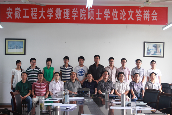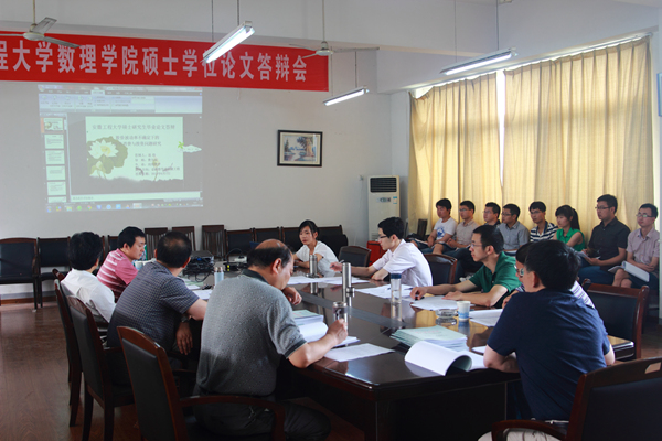 2014年6月7日,数理学院2014届毕业研究生硕士学位论文答辩会在数理学院会议室举行。东华大学理学院副院长胡良剑教授担任此次答辩委员会主席,学院硕士研究生导师及相关教师担任答辩会委员,研究生秘书担任答辩会秘书。答辩委员会主席胡良剑主持会议。