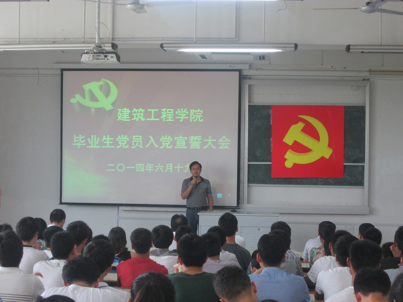 6月19日下午,建筑工程学院召开毕业生党员入党宣誓大会。学院党委书记徐达奇、副书记李烨、各学生党支部书记、毕业班辅导员出席大会。大会由学院团委副书记刘海涛主持。