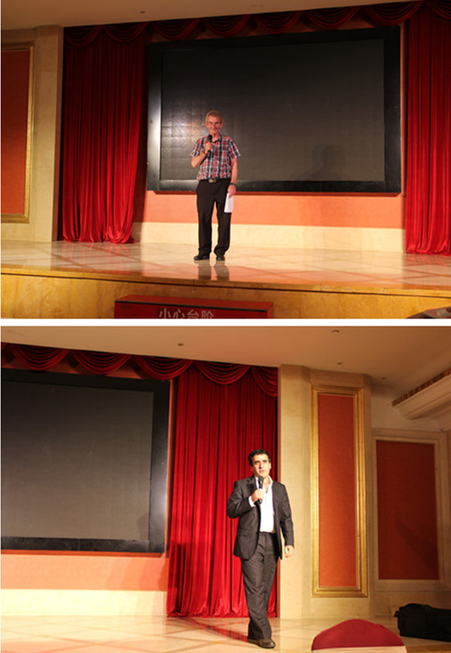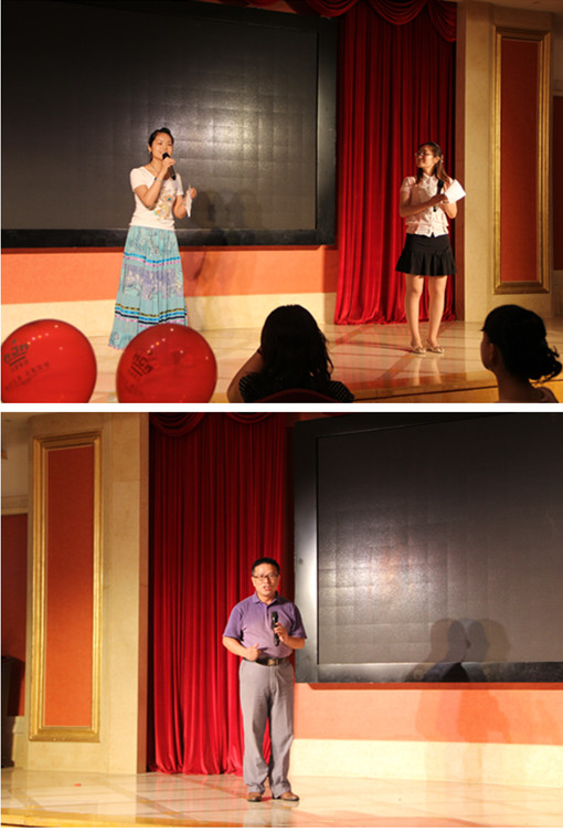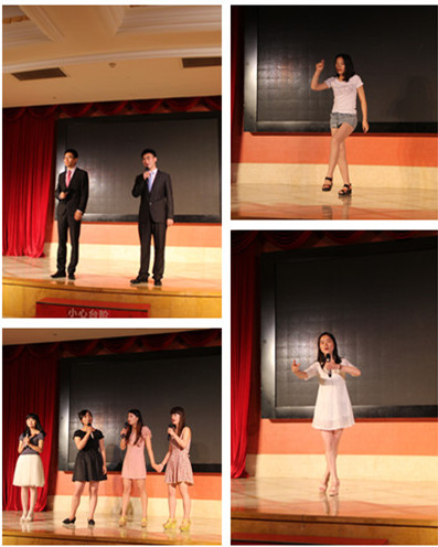 经过精心组织,精心编排,联欢会精彩纷呈,浓情上演。英语101班潘剑博和李亚忠表演了相声《论文答辩之太囧》,他们身着正装,一唱一和,惟妙惟肖,以本次的毕业论文答辩为题材,以“中国好声音”的节目为演译手法,讲述了同学们在毕业论文答辩中所发生的趣闻趣事,表演酣畅淋漓,生动诙谐,现场欢笑声一片,大家都沉浸在欢乐的海洋。英语102班刘光赢等同学表演了舞蹈《乌龟操》,她们模仿乌龟,动作夸张,表情搞怪,配上节奏欢快的音乐,俨然是一个个活动可爱的小乌龟,赢得阵阵喝彩。英语(升)121班班长孙骏表演了一段《脱口秀》,他以一个导游的角色,向大家呈现了专升本班两年来的点点滴滴,中间有磨练,有付出,有欢声,也有泪水,但无论怎样,专升本班同学已收获成长,收获梦想。辅导员王钰和日语系教师党佩荣共同演唱了歌曲《我只在乎你》,她们用日语演唱,歌声悠扬婉转,宛如皓月当空,清风徐徐,字字句句洒落在心田,触着大家,感动着大家。日语系主任郑仲春表演了一段动感十足的舞蹈,博得大家热烈的掌声。期间,主持人还组织了几轮互动游戏,师生共同参与,相互配合,交流了感情,加深了情谊。
