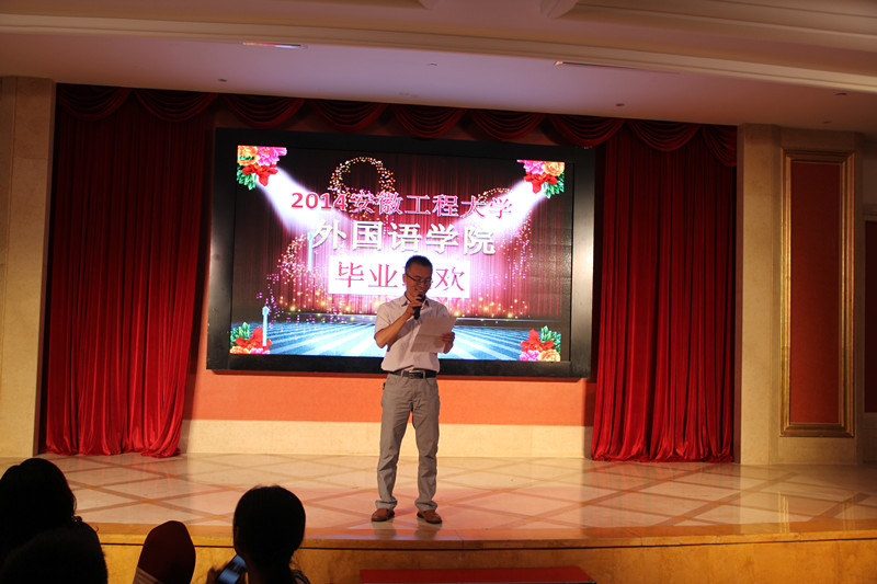 联欢会在一段劲爆火辣、活力四射的开场舞中拉开序幕。随后,英语系主任李新国为同学们送上毕业寄语。他祝贺同学们顺利完成学业,为美好的大学生活划上一个圆满的句号。他说,同学们在安徽工程大学外国语学院无论经历是酸,是甜,还是苦,都将成为人生当中最珍贵的记忆,他希望同学们毕业后,树立起新的目标,踏上新的征程,励精图治,勇攀高峰,做一个有担当的人。同时,他作为老师、朋友,希望同学们以后要保重身体,常回学校看看。