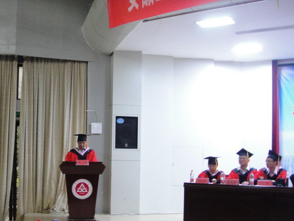 公共管理系教师赵国庆教授作为教师代表真诚地寄语全体毕业生,希望他们在踏上人生新的征程时记住老师的三点叮嘱:一是相信自己,仅有相信自己,才能凝聚前行的动力;二是提升自己,只有提升自己,才能拥有前进的实力;三是善待自己,唯有善待自己,才能保持生命的活力。毕业生李俊同学代表全体毕业生向培养和教诲他们四年的母校、学院表达了感谢和留恋之情。全体2014届毕业生向学院赠送了纪念品。