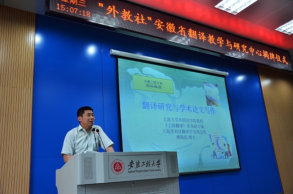 此次报告会为配合我校校企合作项目 “外教社”安徽省翻译教学与研究中心揭牌仪式而举行。报告结束后,傅教授针对教师提出的有关问题进行了详细解答。傅敬民教授报告深入浅出,思路严谨,信息量大,使外院广大教师开阔了视野,了解了翻译研究的动态和新思路,也为翻译教学与翻译实践提供了有益借鉴,为“外教社”安徽省翻译教学与研究中心的工作启动提供了一个良好的开端。