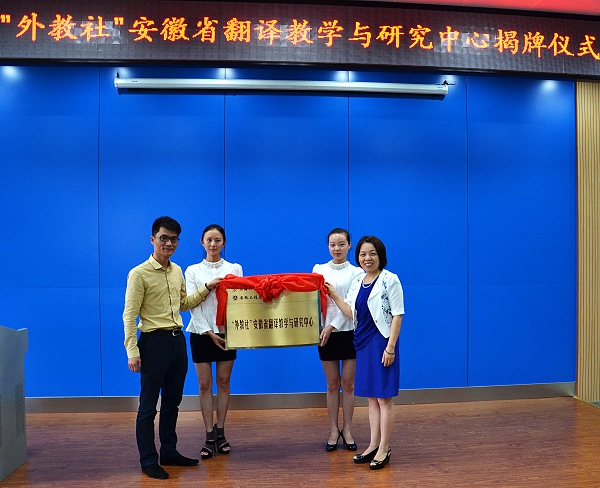 6月25日下午,我校外国语学院与上海外语教育与研究出版社的校企合作项目——“外教社”安徽省翻译教学与研究中心揭牌仪式在5教117录播室举行。上海外语教育出版社华东区主任徐君先生和徐杭代表,以及外国语学院全体教职员工参加了揭牌仪式。外国语学院党委书记、国际交流处处长金成星主持了揭牌仪式,外国语学院院长刘进教授和徐君先生共同为研究中心揭牌并致辞。